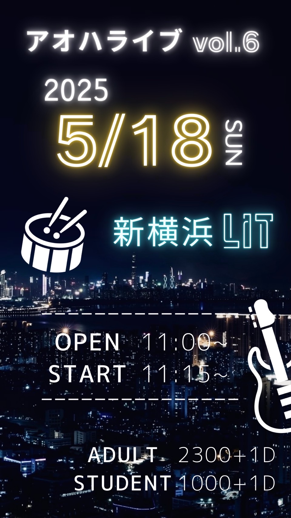 • open 11:00 start 11:15  チケット大人¥2300 学生¥1000(ドリンク代¥600別)